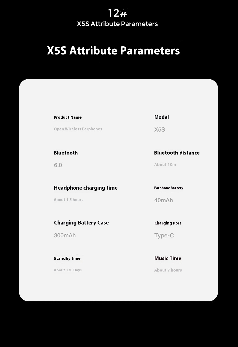 Bluetooth X5S Ear-mounted Comfortable Wear AI Translation Headphones